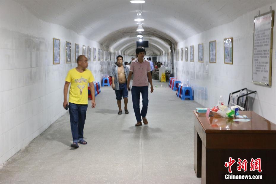持续高温之下,民众来到防空洞避暑。林馨 摄