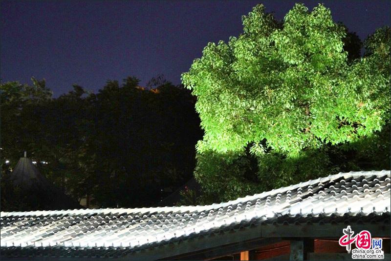 在洪园,白昼与黑夜里,时空构建出两个迥然不同的世界,当夜色笼罩东关荷塘,气温稍降,淡淡的雾霭如纱轻柔缥缈间,灯光与霓虹闪烁处,明与暗、树木与花草、亭台与楼阁,营造出似幻似真的梦境来。