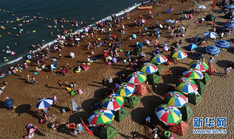 7月21日,游客在山东省日照市万平口滨海景区游玩,感受大海的魅力。 新华社发(董乃德 摄)