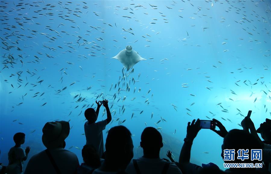 7月21日,游客在日照海洋公园参观、拍照。 当日,以“欢乐日照游 海洋嘉年华”为主题的日照海洋狂欢季活动在山东日照海洋公园启动,在为期两个多月的时间内,将举行海洋嘉年华、欢乐海边游、文艺展演等十余项活动,让游客尽享海洋乐趣。 新华社发(尹召功 摄)