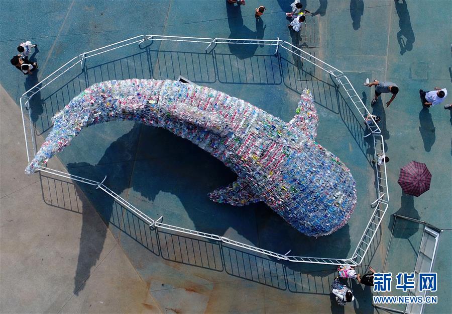近日,2018日照海洋狂欢季在山东日照海洋公园拉开帷幕。其中,一个由4万多个废旧塑料瓶制作而成的“环保鲸鲨”艺术作品亮相海洋公园广场,吸引众多市民和游客驻足观赏。据了解,这些废旧塑料瓶是由万余名游客和学生从海边捡拾收集而来。