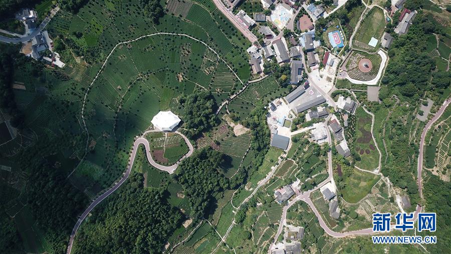 贵州省湄潭县湄江街道金花村茶山(7月22日无人机拍摄)。