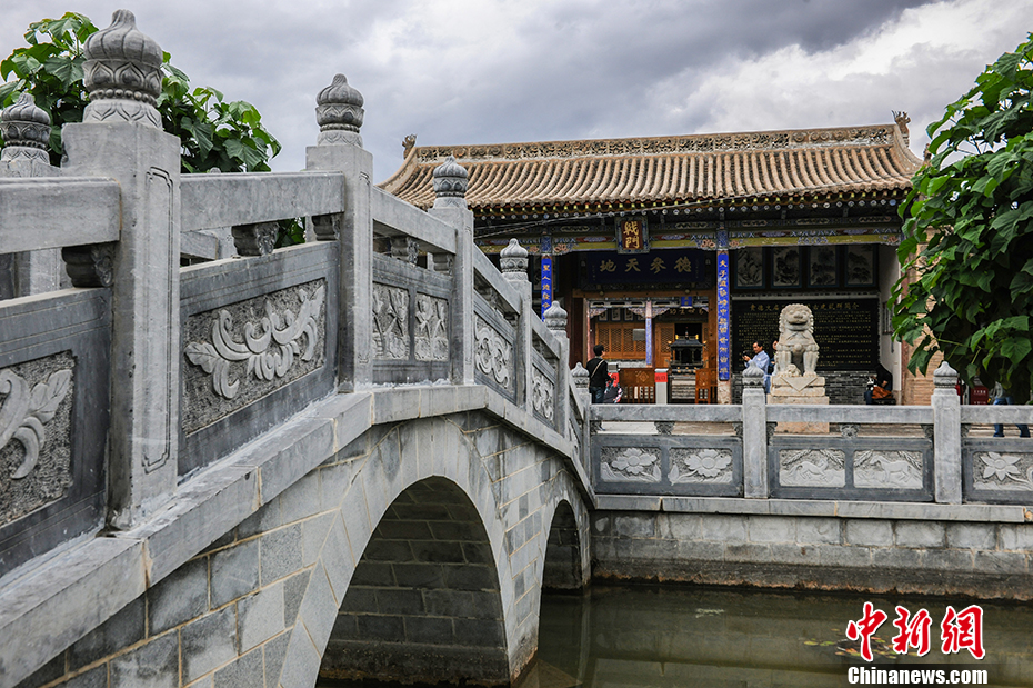 玉皇阁外的戟门和石桥。 中新网记者 富宇 摄