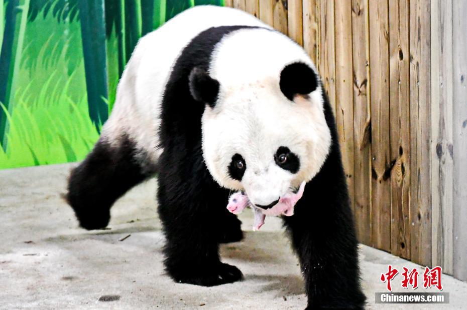7月25日,大熊猫“隆隆”在产房内照顾幼崽。广州大熊猫“隆隆”出生于2013年7月,是首只在华南地区出生的大熊猫宝宝。2018年2月21日,“隆隆”出现发情迹象,随后被运往卧龙神树坪基地与大熊猫“兰仔”成功配对。2018年7月21日,“隆隆”在广州长隆野生动物世界产下雄性幼崽一只。中新社记者 陈骥旻 摄