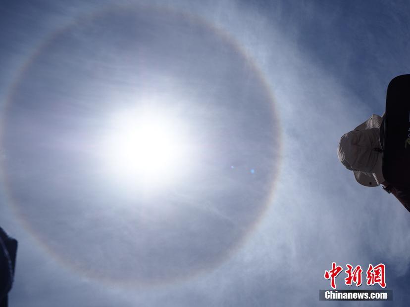 7月25日午间,在青海省海西蒙古族藏族自治州境内的翡翠湖上空,出现日晕景。太阳周边浮现出彩色光圈,均匀环绕,光彩照人。柴达木盆地地处青海省海西州,面积约26.5万平方公里,盆地南缘是长江发源地,盆地内有大小河流100多条,湖泊90多个。刘占昆 摄