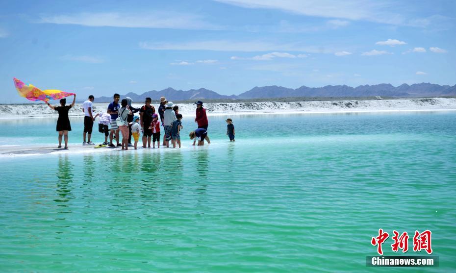 盐湖边玩耍的游客。 刘忠俊 摄