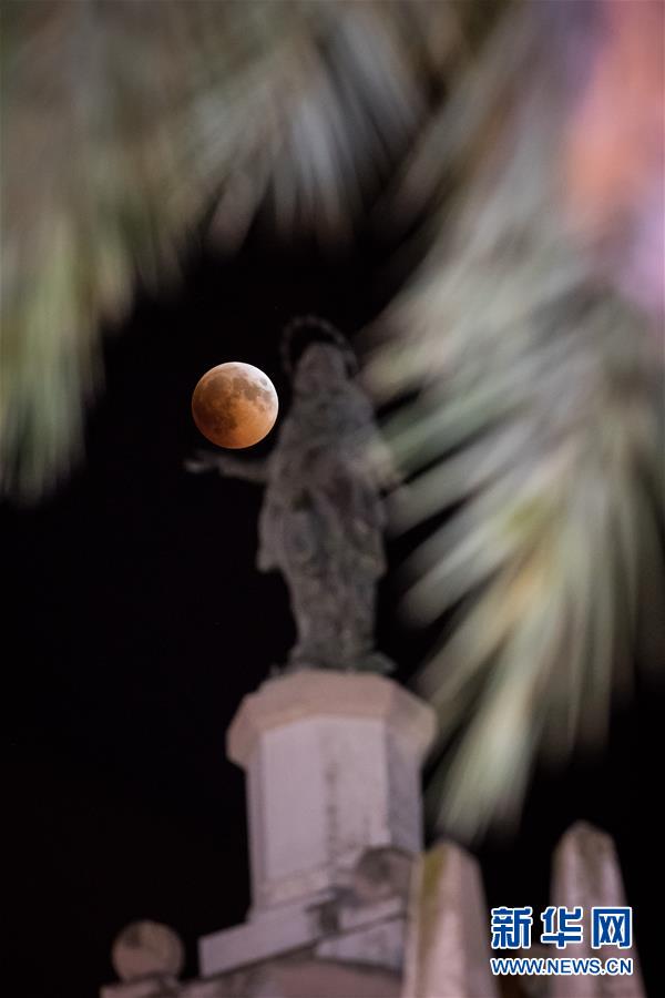当日,月全食天文景观出现在耶路撒冷上空。 新华社记者 郭昱 摄