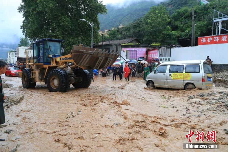 连日来,由于持续遭强降雨袭击,四川石棉县境内广元堡、丰乐乡等多地发生泥石流和山体滑坡灾害。由于当地相关部门通知、抢险及时,并未造成人员伤亡。目前,抢险救灾工作正有序开展。图为清淤工作有序开展。