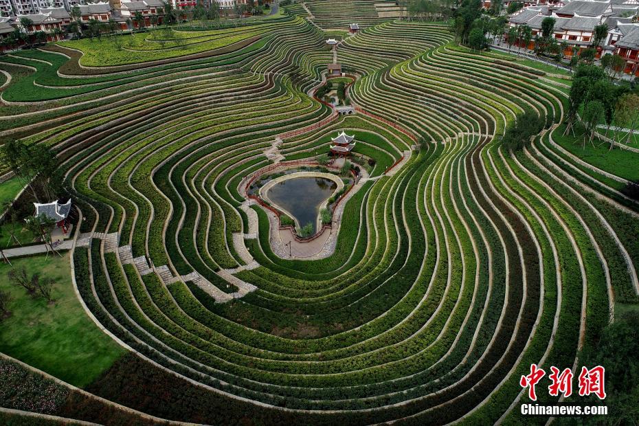 7月30日,俯瞰位于贵州省大方县奢香古镇的古彝梯田美景,相连的梯田线条宛如大地指纹。中新社记者 贺俊怡 摄