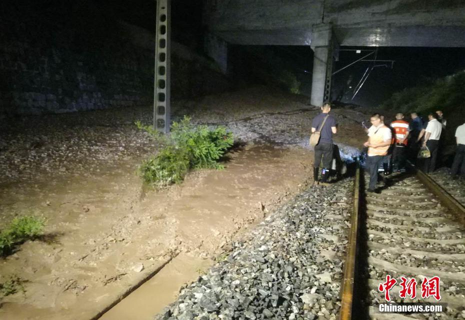 7月30日晚21时左右,受四川暴雨影响,成(都)昆(明)铁路四川凉山州境内的阿寨站至白果站区间发生泥石流水害,导致该段铁路行车中断。灾情发生后,铁路部门迅速启动应急预案,峨眉车务段第一时间组织人员赶赴现场开展抢险工作,沿途各车站以及列车工作人员及时做好出行受阻旅客应急服务和退票改签等工作。同时,积极联系协调地方政府,通告险情,共同处置险情。至31日清晨8时,沿线车站已加开退票窗口9个,退票1685张。至31日清晨,此次灾害已导致成都往返昆明、攀枝花、西昌以及燕岗至普雄、西宁至昆明等地的多趟旅客列车停运,抢险工作正在紧张进行中。图为7月31日凌晨,救援人员赶到灾害现场查勘。 袁亮 摄