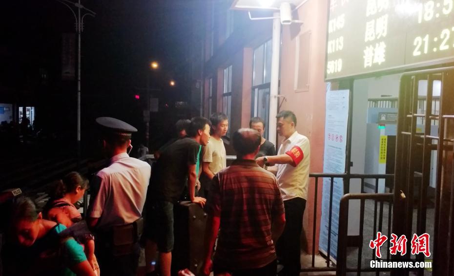 7月30日晚21时左右,受四川暴雨影响,成(都)昆(明)铁路四川凉山州境内的阿寨站至白果站区间发生泥石流水害,导致该段铁路行车中断。灾情发生后,铁路部门迅速启动应急预案,峨眉车务段第一时间组织人员赶赴现场开展抢险工作,沿途各车站以及列车工作人员及时做好出行受阻旅客应急服务和退票改签等工作。同时,积极联系协调地方政府,通告险情,共同处置险情。至31日清晨8时,沿线车站已加开退票窗口9个,退票1685张。至31日清晨,此次灾害已导致成都往返昆明、攀枝花、西昌以及燕岗至普雄、西宁至昆明等地的多趟旅客列车停运,抢险工作正在紧张进行中。图为甘洛车站工作人员正在向旅客做好解释工作。 袁亮 摄