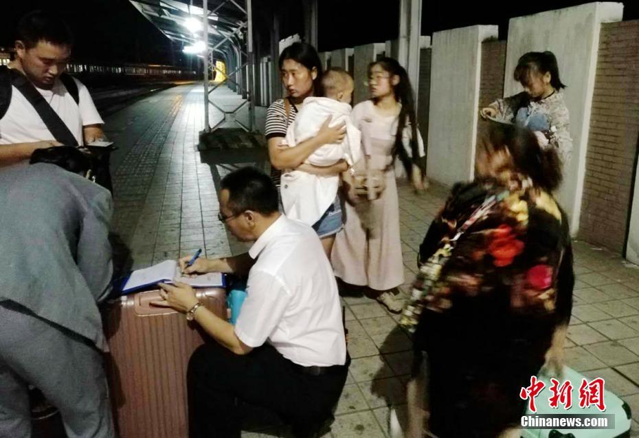 7月30日晚21时左右,受四川暴雨影响,成(都)昆(明)铁路四川凉山州境内的阿寨站至白果站区间发生泥石流水害,导致该段铁路行车中断。灾情发生后,铁路部门迅速启动应急预案,峨眉车务段第一时间组织人员赶赴现场开展抢险工作,沿途各车站以及列车工作人员及时做好出行受阻旅客应急服务和退票改签等工作。同时,积极联系协调地方政府,通告险情,共同处置险情。至31日清晨8时,沿线车站已加开退票窗口9个,退票1685张。至31日清晨,此次灾害已导致成都往返昆明、攀枝花、西昌以及燕岗至普雄、西宁至昆明等地的多趟旅客列车停运,抢险工作正在紧张进行中。图为普雄车站工作人员正在对出行受阻的旅客进行登记。 袁亮 摄