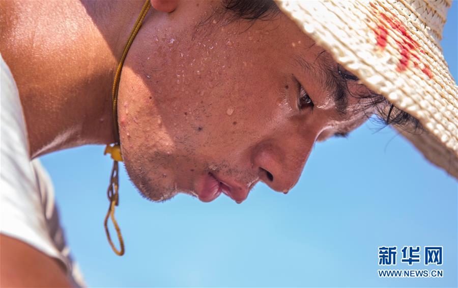 7月30日,在江西省九江市一处建筑工地,一名工人在进行施工作业。 烈日炎炎,热浪袭人。建筑工地的劳动者不畏酷暑,坚守岗位,为城市的建设奉献汗水。 新华社发(杨牧青 摄)
