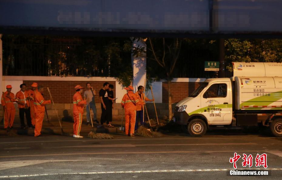 图为多名工作人员正在打扫事故现场。刘佩琦 摄
