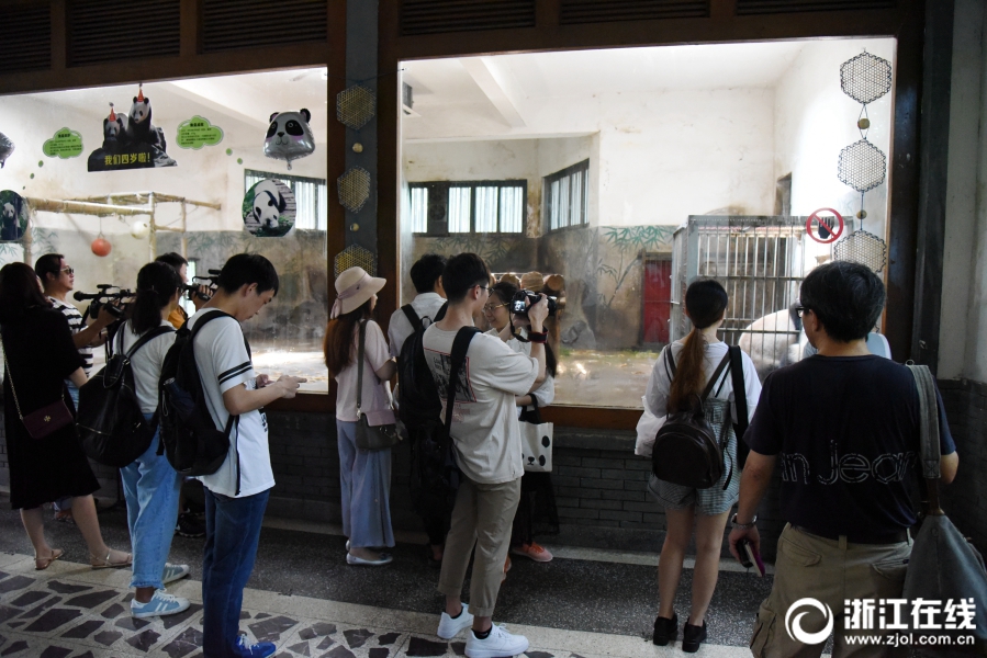 杭州动物园熊猫“成就”和“双好”迎来四周岁生日