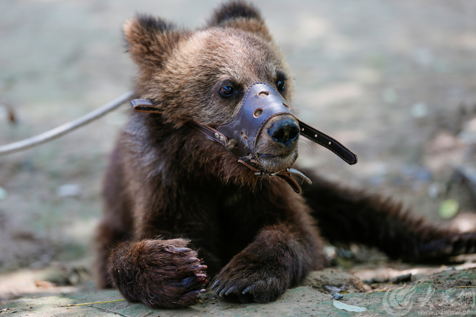 8月1日,在聊城动物园,4个月大的熊与老虎、顽皮的猴子,炎炎烈日下仍不忘卖萌。(记者 毕胜)