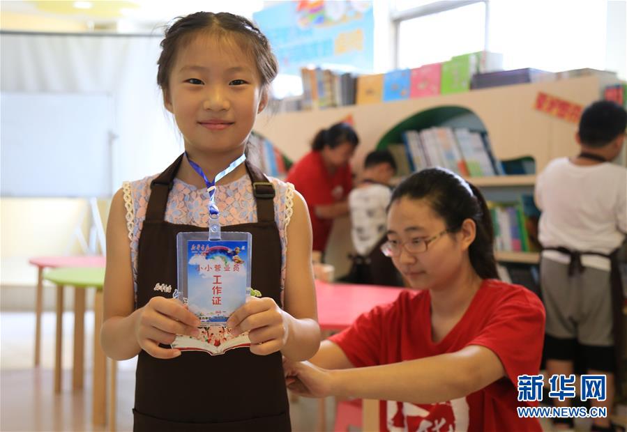 暑假期间,河北省邢台市新华书店开展“小小荐书员”活动,旨在通过职业体验锻炼孩子们的沟通能力,激发青少年的读书热情。 新华社发(张驰 摄)