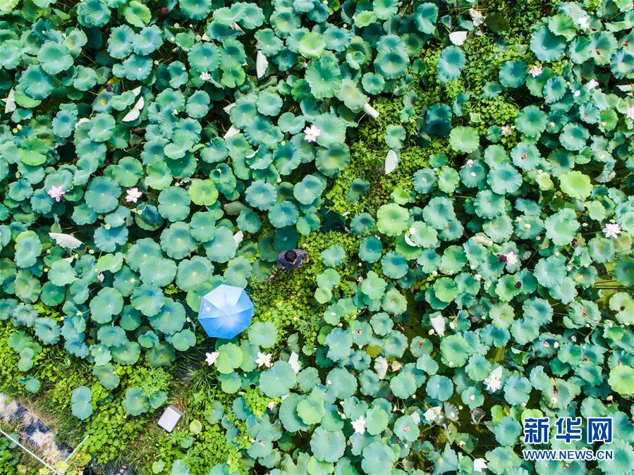 盛夏时节,浙江省杭州市临安区潜川镇伍村的“荷塘月色”荷花园内荷花争艳。潜川镇伍村通过土地流转、种植荷花,以农旅融合的方式吸引游客前来赏荷休闲,品尝当地特色美食,感受夏日山村之美。 新华社记者 徐昱 摄