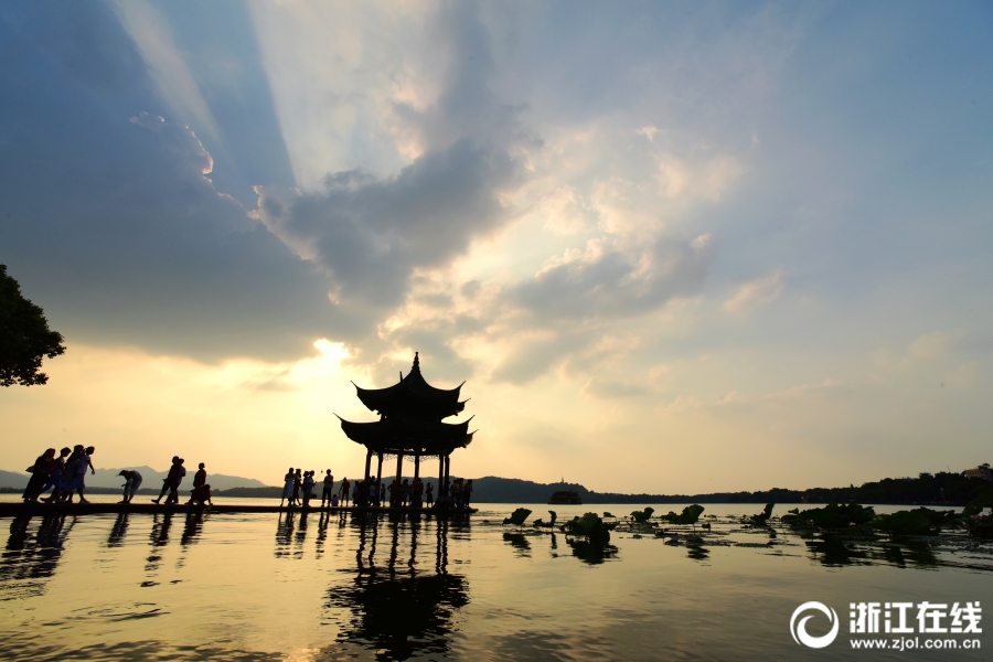 8月1日,受台风“云雀”外围影响,杭城时雨时晴。西湖上空也不断上演着一出出“云戏”。(浙江在线拍友 里尔 摄)