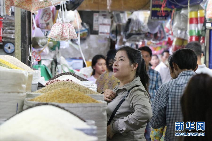 7月31日,在柬埔寨金边乌亚西市场,顾客在挑选商品。 新华社记者毛鹏飞摄