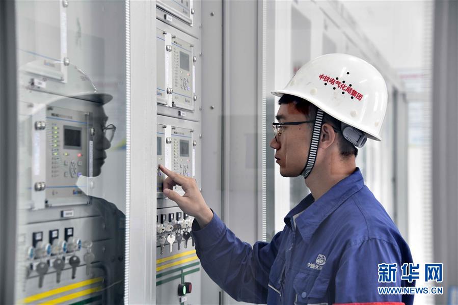 8月2日,在济青高铁邹平牵引变电所,中铁电气化局工作人员检查设备送电情况。