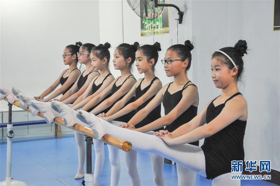 8月2日,小朋友在山东聊城高阳舞蹈学校训练房内练习基本功。 暑假期间,许多小朋友以各种各样的方式充实自己的假期。 新华社发(许文豪 摄)