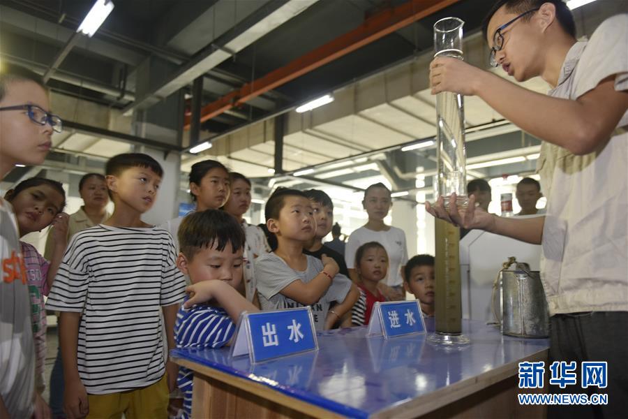 8月2日,小朋友在安徽省合肥市蜀山区井岗镇清溪净水厂的水质采样点观察进水与出水的区别。 暑假期间,许多小朋友以各种各样的方式充实自己的假期。 新华社发(葛宜年 摄)