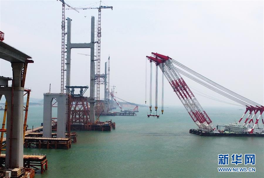 8月2日无人机拍摄的平潭海峡公铁大桥元洪航道桥钢梁架设施工现场。