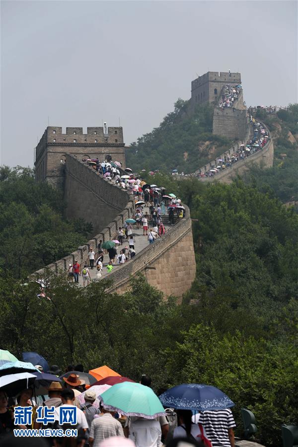 8月4日,游客攀登位于北京市延庆区的八达岭长城。进入暑期后,北京八达岭长城迎来旅游高峰期。虽然天气炎热,仍有大批游客接踵而来。 新华社发(王中生 摄)