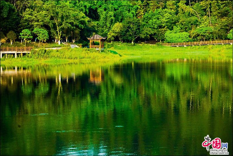 隆昌古宇湖的傍晚时分,盛夏灼热的阳光渐渐褪去暑热,湖边的清凉迎来越来越多的当地人,这是他们日常锻炼散步的地方,翻过那座塑有孔子雕像的垭口,山那边便是热闹的城市中心,山峦环抱中古宇湖宁静安详。