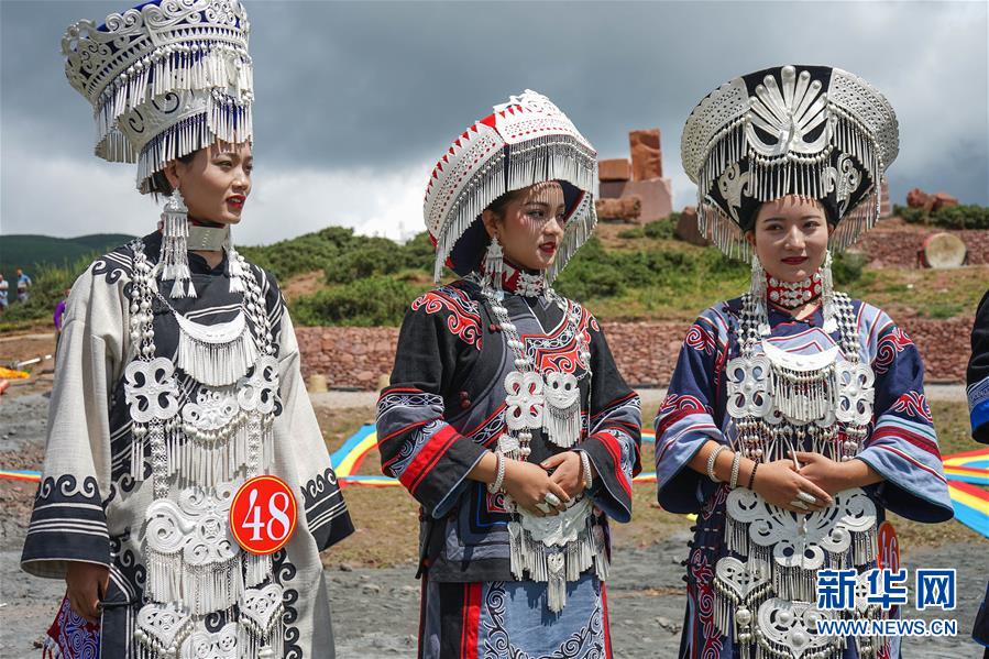 8月6日,参赛选手在比赛中回答评委提问。 当日,2018年凉山彝族火把节彝族传统选美大赛在昭觉县谷克德的草原上举行。来自四川、云南、贵州等地的45名彝族青年男女,通过服装展示、才艺表演、组合表演、知识问答等环节,由德高望重的长者评选出美丽的“金索玛”和威武的“金鹰”。 新华社发(吕明泽 摄)