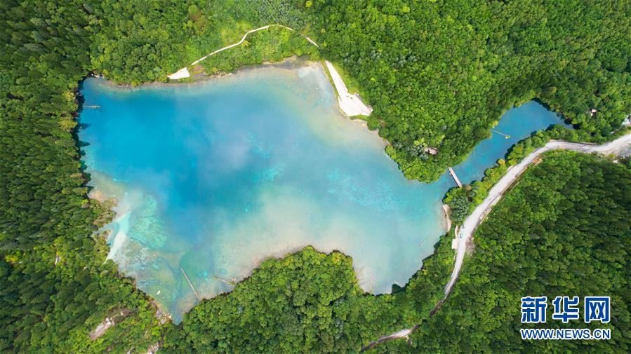 8月2日无人机拍摄的九寨沟景区内的五花海。 新华社记者 薛晨 摄
