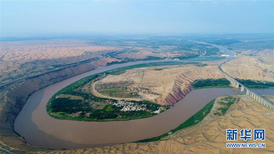 流经宁夏中卫市境内的黄河(6月26日无人机拍摄)。