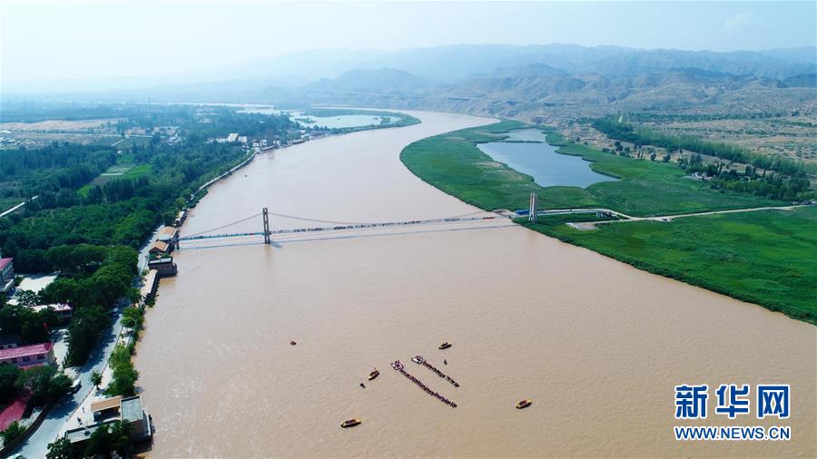 流经宁夏中卫市境内的黄河(6月27日无人机拍摄)。 新华社记者 王鹏 摄