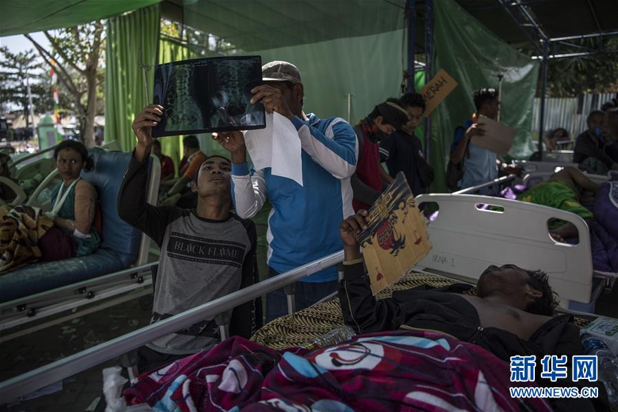 8月8日,在印度尼西亚龙目岛地震灾区,因医院倒塌,灾民在帐篷内接受治疗。 新华社记者吕小炜摄