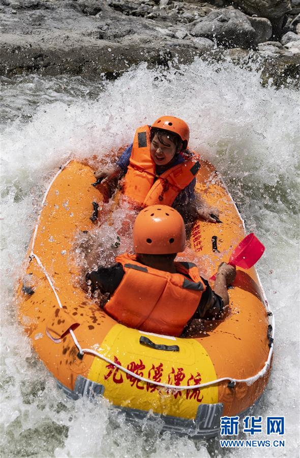 8月8日,游客在湖北省宜昌市秭归县九畹溪景区漂流。 新华社发(郑家裕 摄)