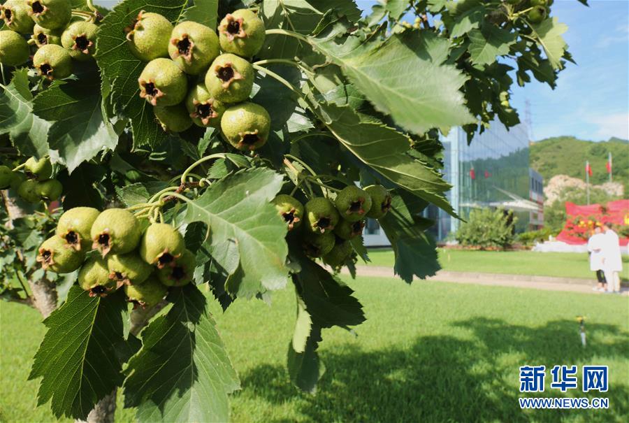 8月9日,技术人员在承德市营子区山楂深加工农业园区内行走。