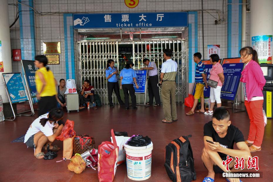 海口港客运站售票大厅前因停航而滞留的旅客。骆云飞 摄