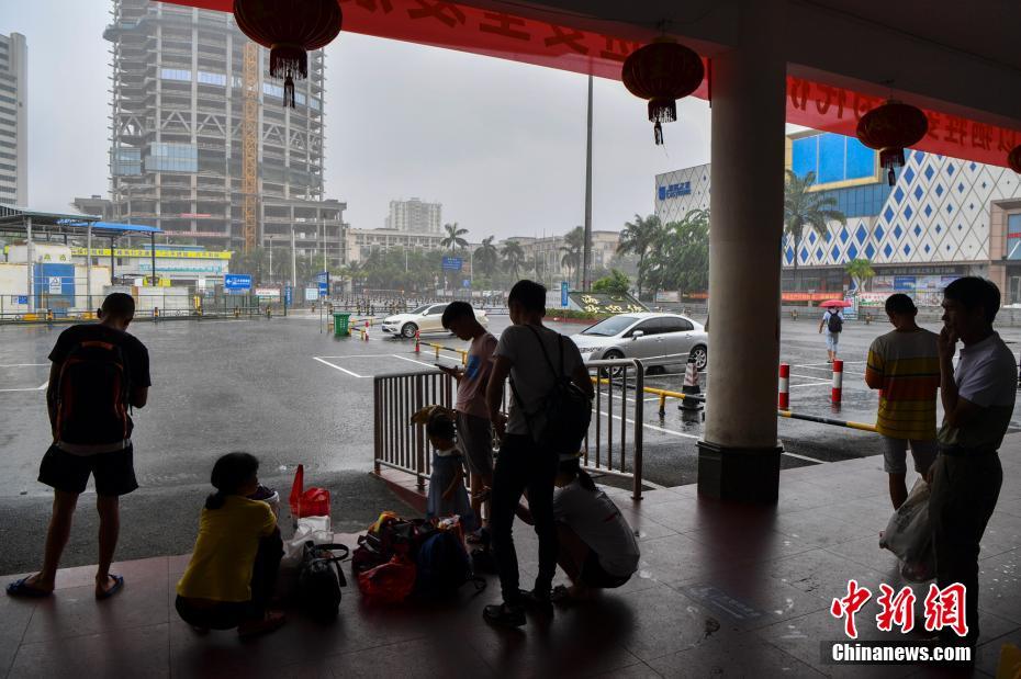 海口港客运站售票大厅前因停航而滞留旅客。 骆云飞 摄