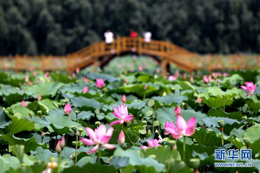 8月10日,游客在河北香河县刘宋镇庆功台村万亩荷塘景区观赏荷花。近日,河北香河县刘宋镇庆功台村万亩荷塘景区的荷花竞相绽放,吸引游客和市民前来观赏。 新华社记者 王晓 摄