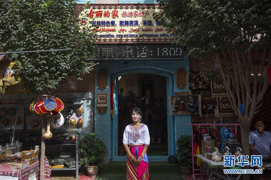 在喀什老城景区的阿热亚路上,绽放着一朵开在旅游热潮里的花朵——“古丽的家”。在维吾尔语中,“古丽”意为花朵。31岁的沙拉麦提古丽·卡日曾是老城景区的一名讲解员。2017年3月,她租下一处约300平方米的传统民居,办起老城中第一个家访式旅游点,让更多的游客走进老城居民的日常生活。