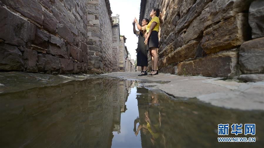 8月10日,游客在河北省沙河市太行古村落王硇村游玩。 新华社记者 牟宇 摄
