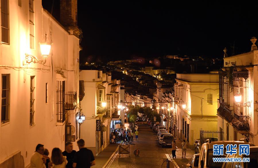 这是8月10日在西班牙加的斯省的阿尔科斯-德拉弗龙特拉拍摄的夜景。