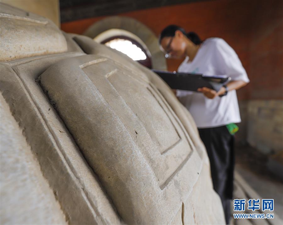 8月13日,天津大学建筑学院学生在清东陵景区进行建筑测量。近年来,河北唐山遵化市清东陵景区积极与高等院校“联姻”,合作拓宽研究领域,目前已与国内多所院校建立了研学关系,成为大学生们的实践课堂。高校学生在实践中增长知识,也为景区建筑、历史研究提供了大量、详实的资料依据。新华社发 刘满仓 摄