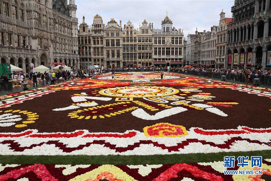 8月16日,由50多万朵秋海棠铺就的鲜花地毯亮相比利时布鲁塞尔大广场。 新华社记者王晓郡摄