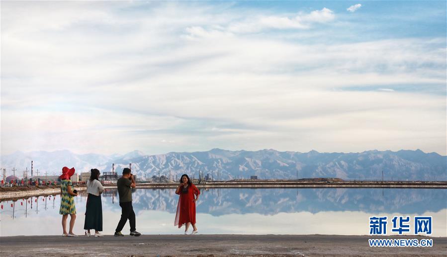 8月18日,游客在察尔汗盐湖边拍照留念。 位于青海柴达木盆地的察尔汗盐湖矿产资源丰富,是我国的钾肥生产基地。如今察尔汗盐湖旅游价值日益显现,吸引了来自全国各地的游客前来观光休闲。 新华社记者 田文杰 摄