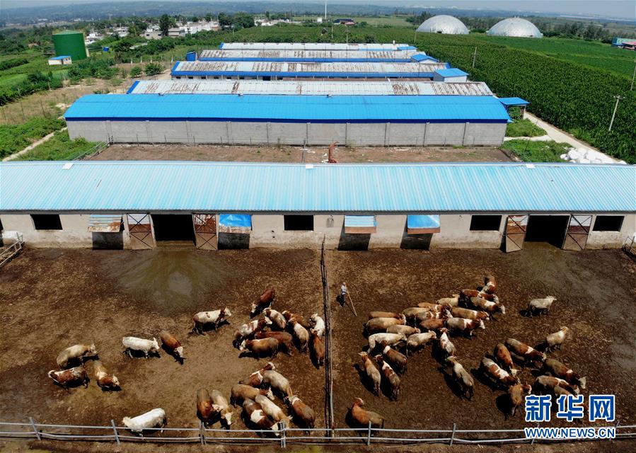 这是河南省汤阴县宜沟镇尚家庵村一家农业生态园中的畜禽舍(8月21日无人机拍摄)。