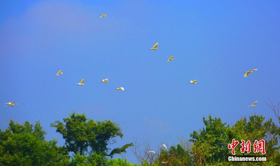 江西泰和良好生态吸引白鹭安家筑巢