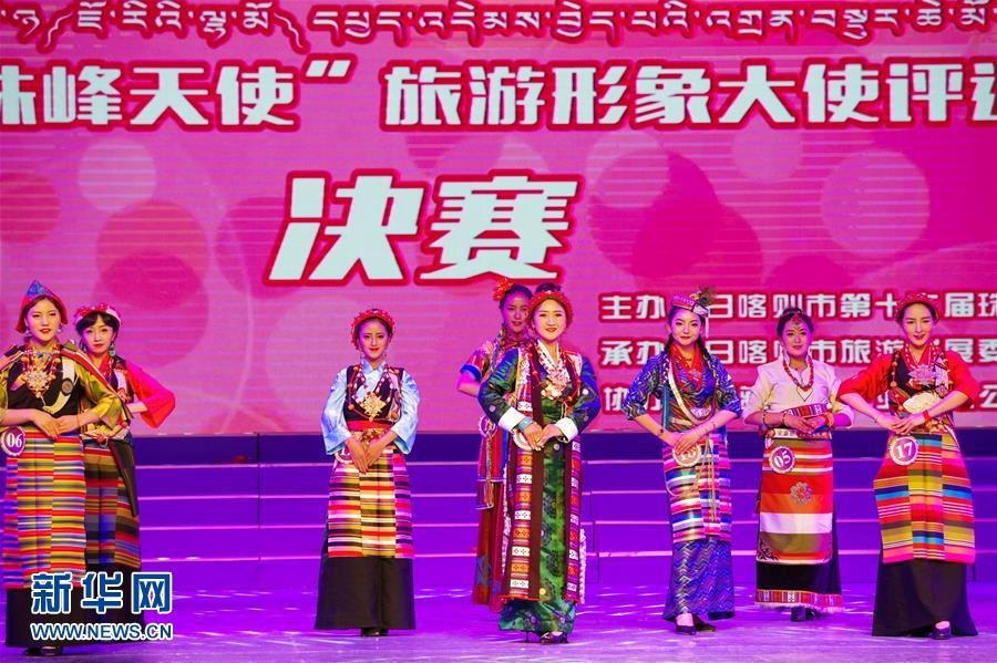 8月22日,在西藏日喀则,选手们参加第三届“珠峰天使”旅游形象大使评选大赛决赛。 当晚,第三届“珠峰天使”旅游形象大使评选大赛决赛在日喀则剧院举行。活动旨在评选出最具日喀则特质的旅游形象代言人,以展示日喀则丰富的旅游资源和良好的旅游形象。 新华社记者 刘东君 摄