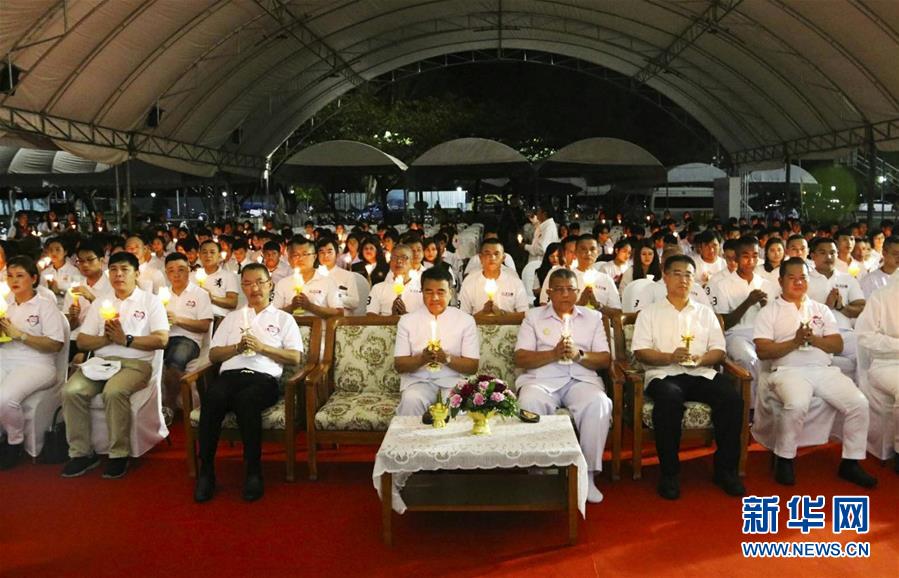 8月23日,在泰国普吉府海边的九天宫公园,泰国普吉府府尹诺拉帕(前右四)、泰国海军第三军区总指挥颂讷(前右三)等各方人员参加悼念仪式。